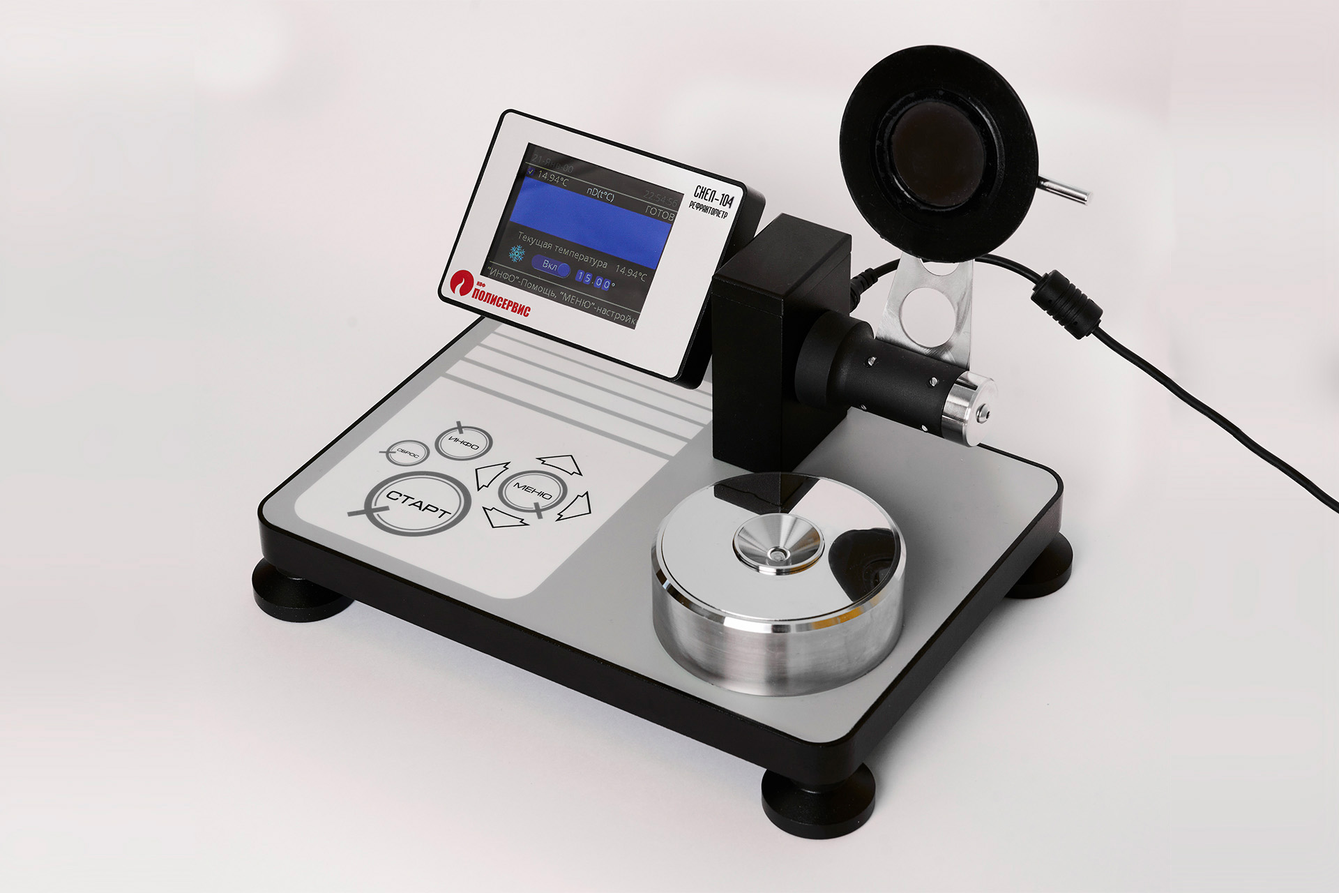 Рефрактометр СНЕЛ-104-ПВКЖ предназначен для измерения показателя преломления жидких сред nD20 величиной от 1,33 до 1,52 и концентрации водных растворов сахарозы по шкале Brix с последующим автоматическим отображением их значений на электронном дисплее.