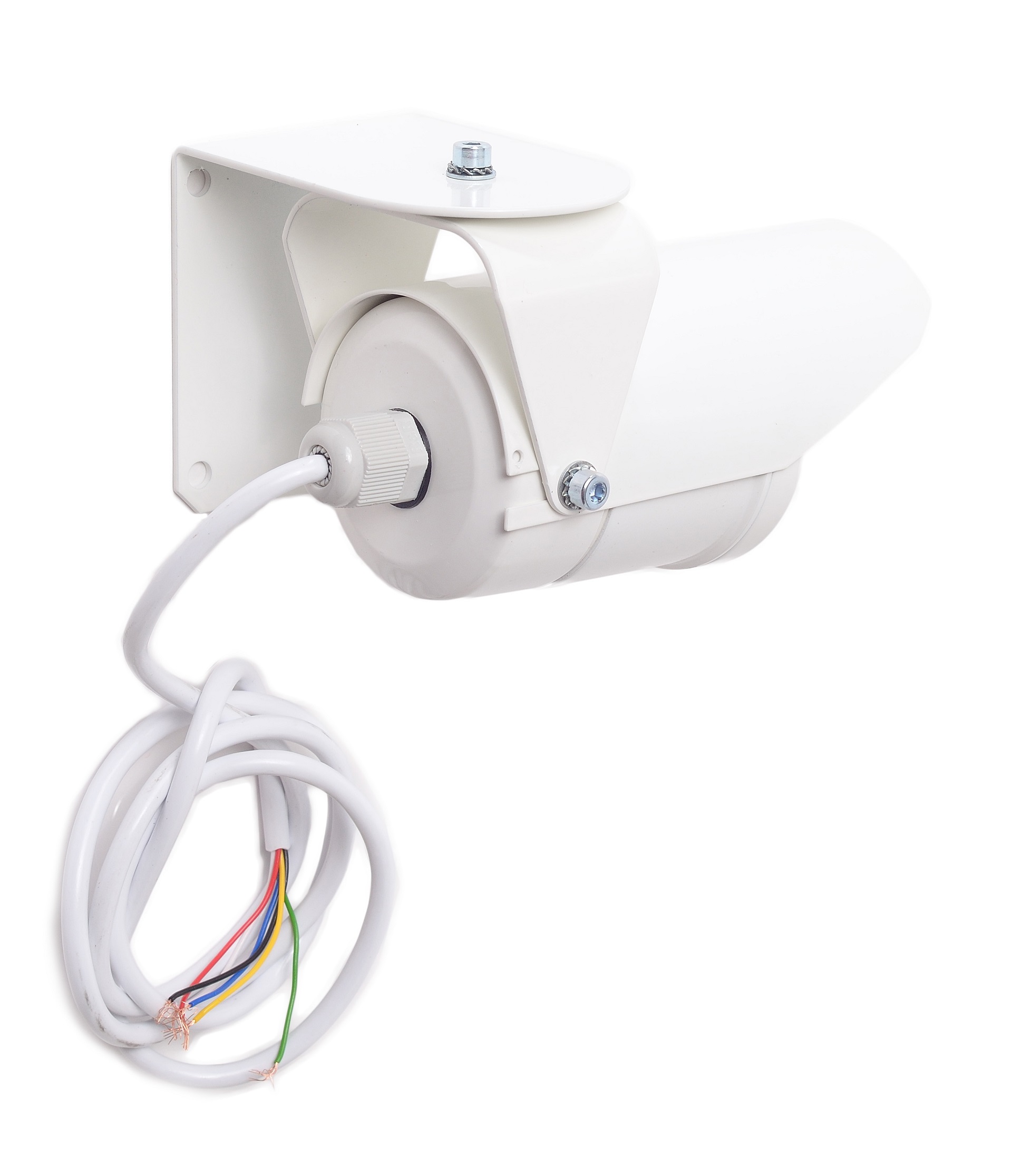 Конструктивно извещатель выполнен в виде цилиндрического алюминиевого корпуса с козырьком, закрепленного на кронштейне, который обеспечивает возможность ориентирования изделия в пространстве относительно горизонтальной и вертикальной осей. Кронштейн закреплен на внутренней стороне угольника с помощью винтового соединения, которое позволяет ориентировать изделие по горизонтали относительно вертикальной оси на угол ±90. Винтовое соединение позволяет ориентировать извещатель по вертикали относительно горизонтальной оси в диапазоне от +30 до -60. Кронштейн закреплен на внутренней стороне угольника с помощью винтового соединения, которое позволяет ориентировать изделие по горизонтали относительно вертикальной оси на угол ±90. Винтовое соединение поз. 4 позволяет ориентировать извещатель по вертикали относительно горизонтальной оси в диапазоне от +30 до -60. Внешняя сторона угольника предназначена для установки извещателя на перекрытиях, стенах и других строительных конструкциях зданий и сооружений, а также на технологическом оборудовании с помощью крепления на четырех шурупах или винтах диаметром 4 мм. Корпус извещателя состоит из основания и крышки, скрепленного резьбовым соединением с герметизирующим кольцом. В торце основания находится линза, являющаяся также оптическим фильтром, защищающим извещатель от паразитных засветок и агрессивных факторов внешней среды. В основании установлена печатная плата с элементами и кабельный ввод. Извещатель обеспечивает индикацию режимов работы свечением светодиодного индикатора красного цвета, расположенного на плате извещателя. Перемычка П1 позволяет отключать светодиодный индикатор для обеспечения скрытности извещателя. При удаленной перемычке П1 светодиодный индикатор отключается. Потенциометр ПОРОГ предназначен для регулировки чувствительности извещателя. Вращение потенциометра по часовой стрелке уменьшает порог срабатывания (увеличивает чувствительность извещателя). Связь извещателя с ППК и с источником питания осуществляется кабелем.