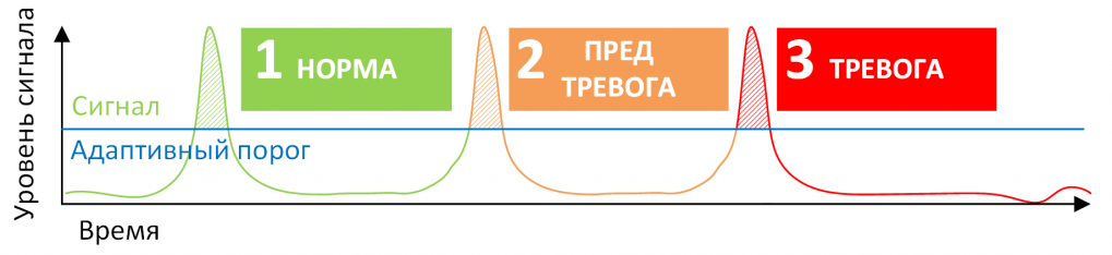 duration of exposure. Allows you to determine events that are weak in amplitude, but extended in time, such as drilling and sawing of a guarded fence or pipeline. Duration can be determined over an extended time interval and does not require continuity of exposure;