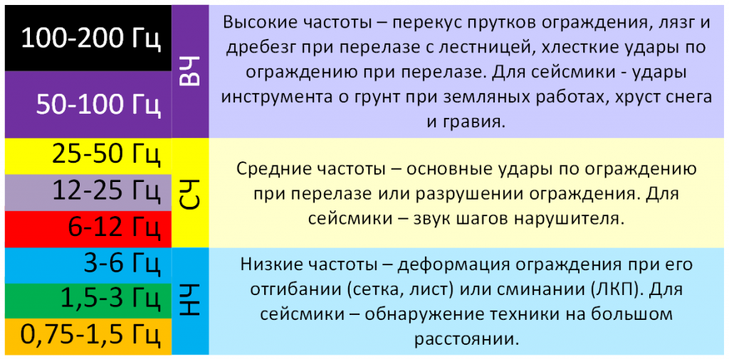 Regardless of the type of installation and connection, each zone of the sensitive cable uses eight-band frequency signal processing, which allows you to work confidently in any climatic conditions in a wide range of natural environmental and fence noise. Any frequency bands can be excluded from operation if it is impossible to eliminate the source that generates interference - for example, the railway generates an interference background in the low and medium frequencies, while high frequencies are attenuated in the ground, not reaching the fence.