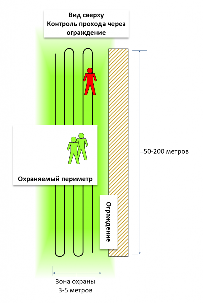 formation of a multi-line perimeter security system based on different physical principles. For example, infrared barriers can be connected to the system to protect the perimeter from being thrown over or from crossing it using an A-shaped ladder without contact with the fence;