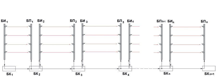 Извещатель состоит из блока излучателей (БИ), соответствующего ему блока приемников (БП), а также блока коммутации. При работе БИ и БП должны быть направлены рабочими сторонами навстречу друг другу. БИ и БП образуют инфракрасный барьер из параллельных лучей, при пересечении каждого из которых формируется извещение о тревоге.