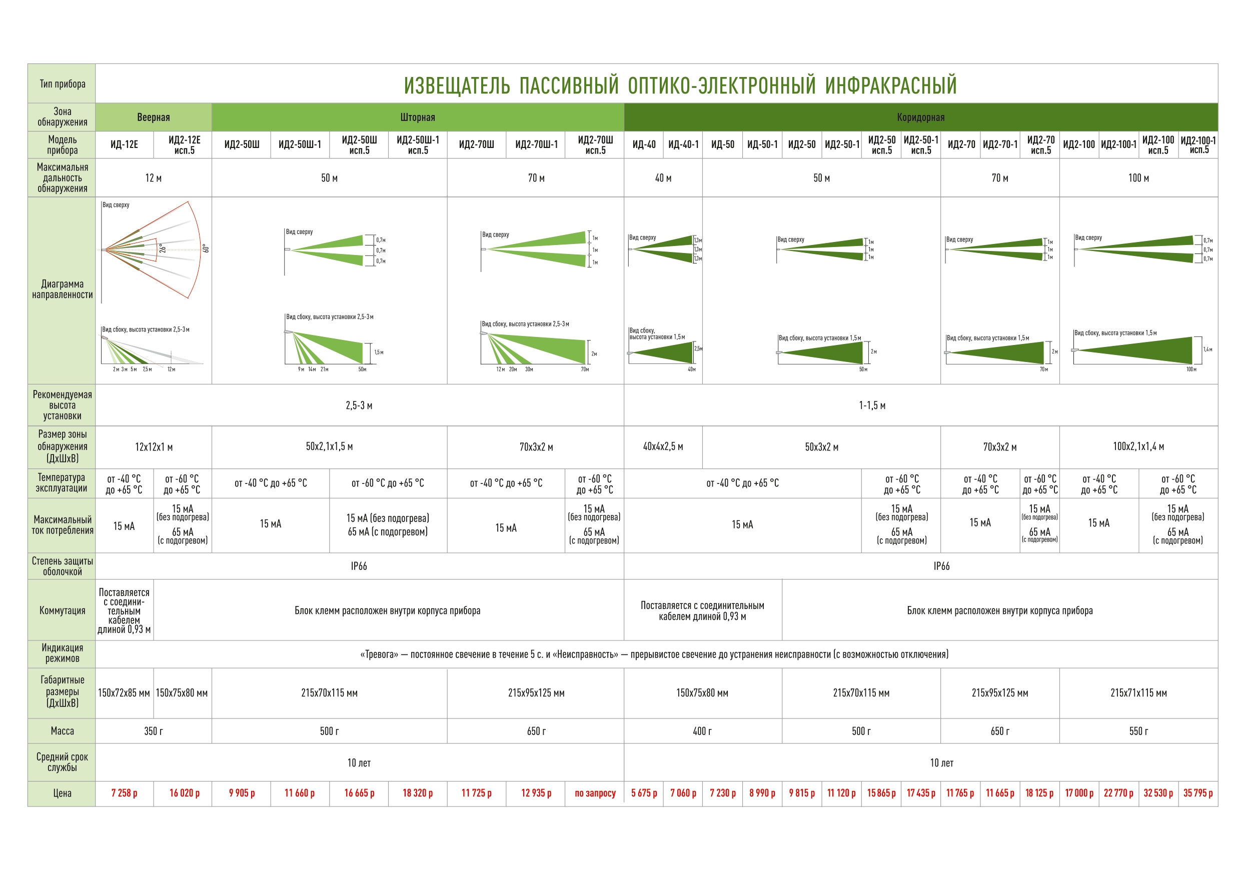 Извещатель пассивный оптико-электронный инфракрасный | Коридорная | до 100 | 17 340,00 руб. |