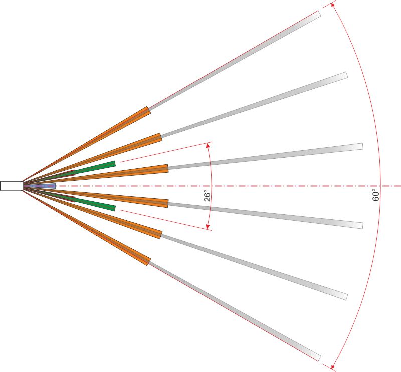 Имеет множество расходящихся лучей в нескольких плоскостях. 6 лучей и 5 секторов по вертикали. Оптимальна для защиты небольших площадок, проездов, ворот и калиток.