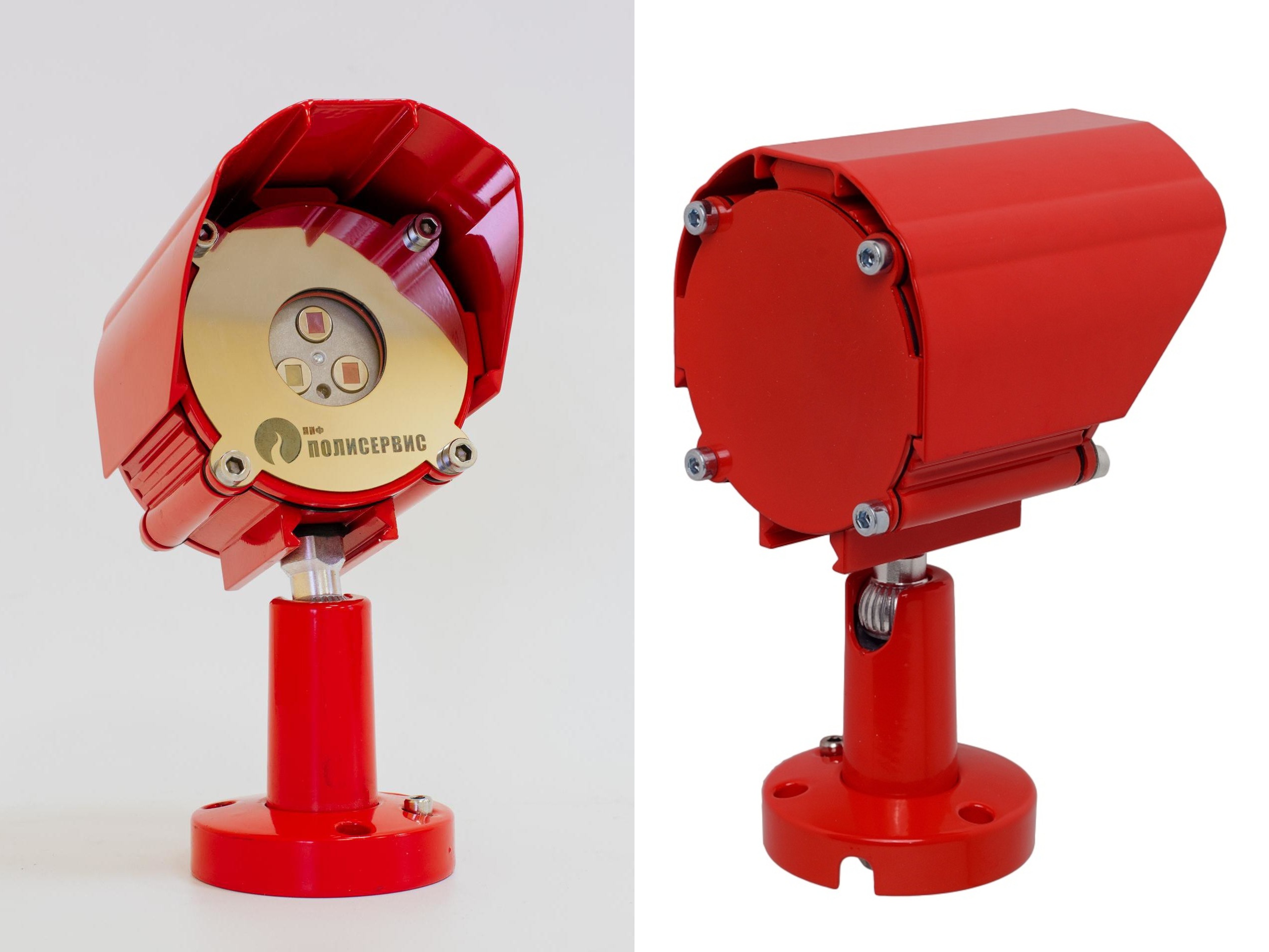 Применяется на открытых площадях и в помещениях с особо тяжелыми помеховыми условиями, для обнаружения возгорания углеводородов. Извещатель обнаруживает пламя по пульсирующему электромагнитному излучению на трех участках ИК-диапазона: первый опорный 4,0 мкм, второй опорный 5,0 мкм и измерительный 4,4 мкм. Микропроцессорная адаптивная обработка трех ИК-каналов позволяет использовать извещатель для регистрации очагов возгорания различных материалов вне зависимости от внешних условий и практически исключает влияние источников ложного срабатывания на формирование извещения о пожаре.