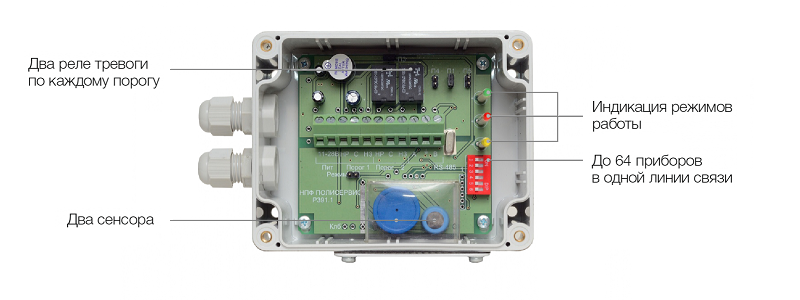 - подключить на одну линию до 64 сигнализаторов