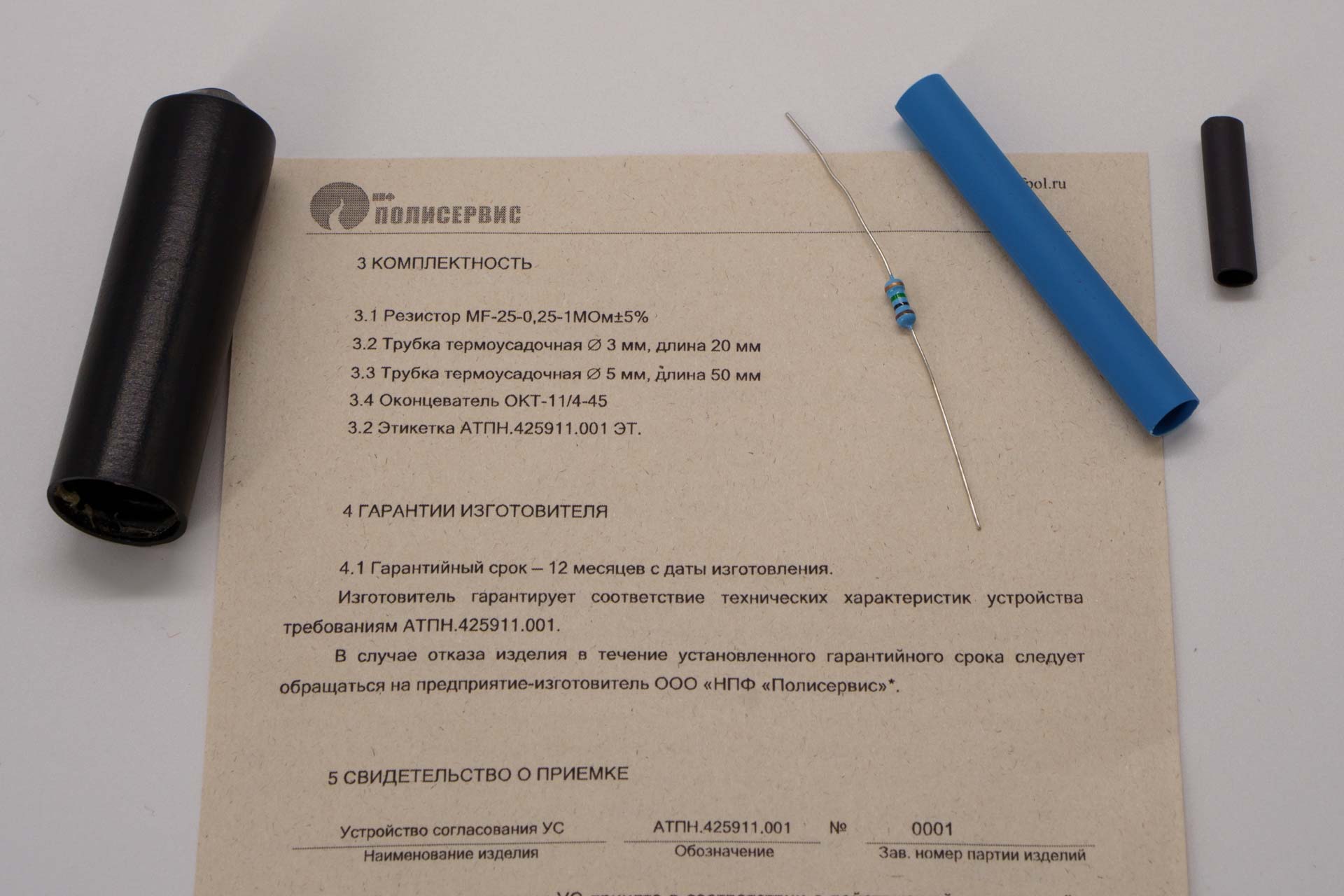 Устройство с оконечным резистором 1 МОм, подключаемым на конце трибоэлектрического кабеля ТД-1, образует замкнутый контур чувствительного элемента. Второй конец кабеля подключается к ПУ-Т, который усиливает сигналы, возникающие в контуре под воздействием механических колебаний заграждения, на котором он установлен. Одновременно устройство обеспечивает герметизацию конца кабеля при помощи термоусадочных трубок, устанавливаемых при монтаже.