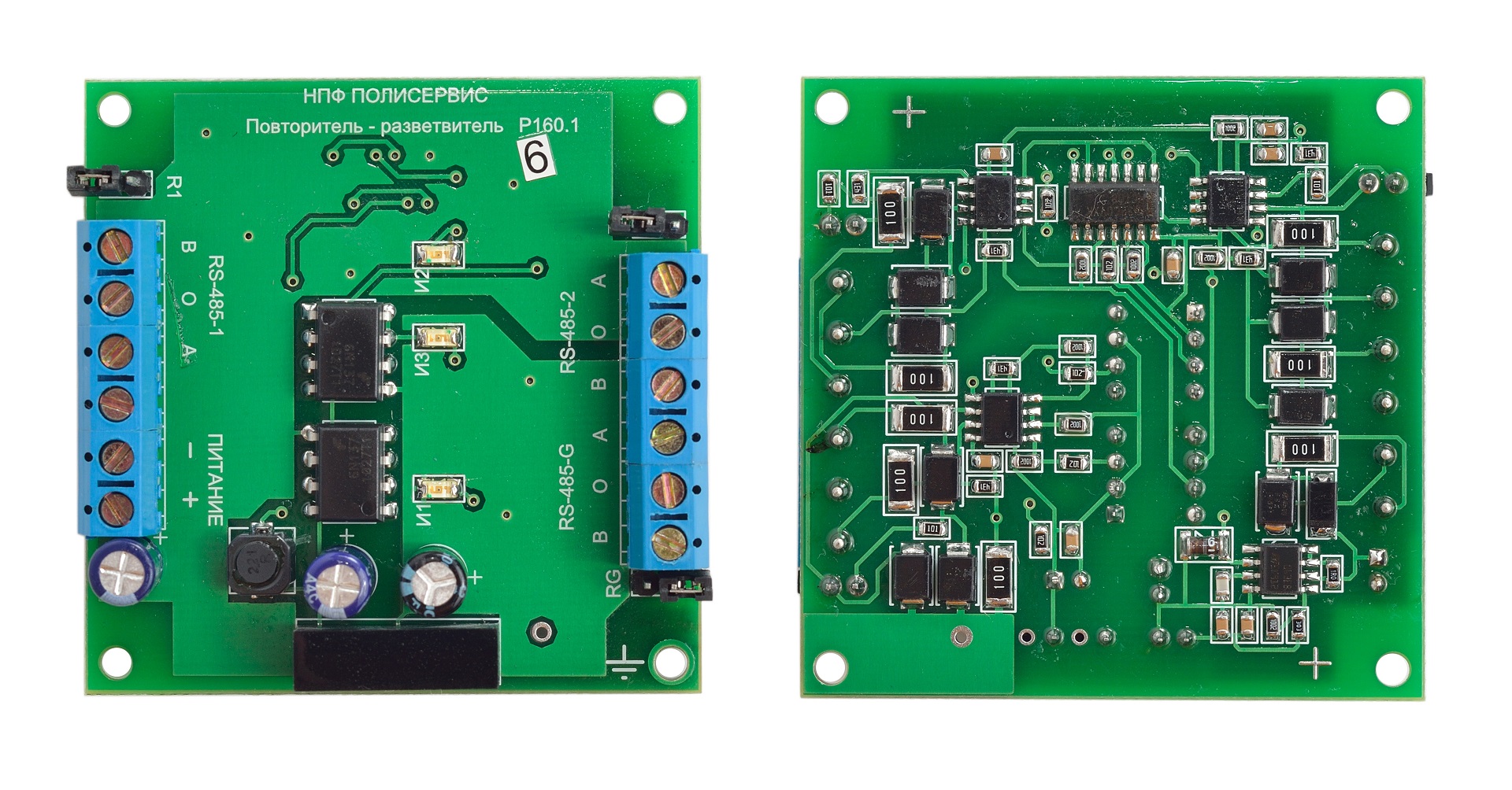 Повторитель-разветвитель интерфейсов RS-485/RS-485/RS-485-G предназначен для восстановления формы электрического сигнала интерфейса RS-485 и его маршрутизации по двум направлениям. Используется для ветвления и увеличения длины линии связи при построении сети сбора информации с использованием интерфейса RS-485. Модуль выполнен в виде платы с установленными на ней элементами, предназначенной для установки в монтажную коробку соответствующего размера или в любой другой корпус, удовлетворяющий условиям эксплуатации.
